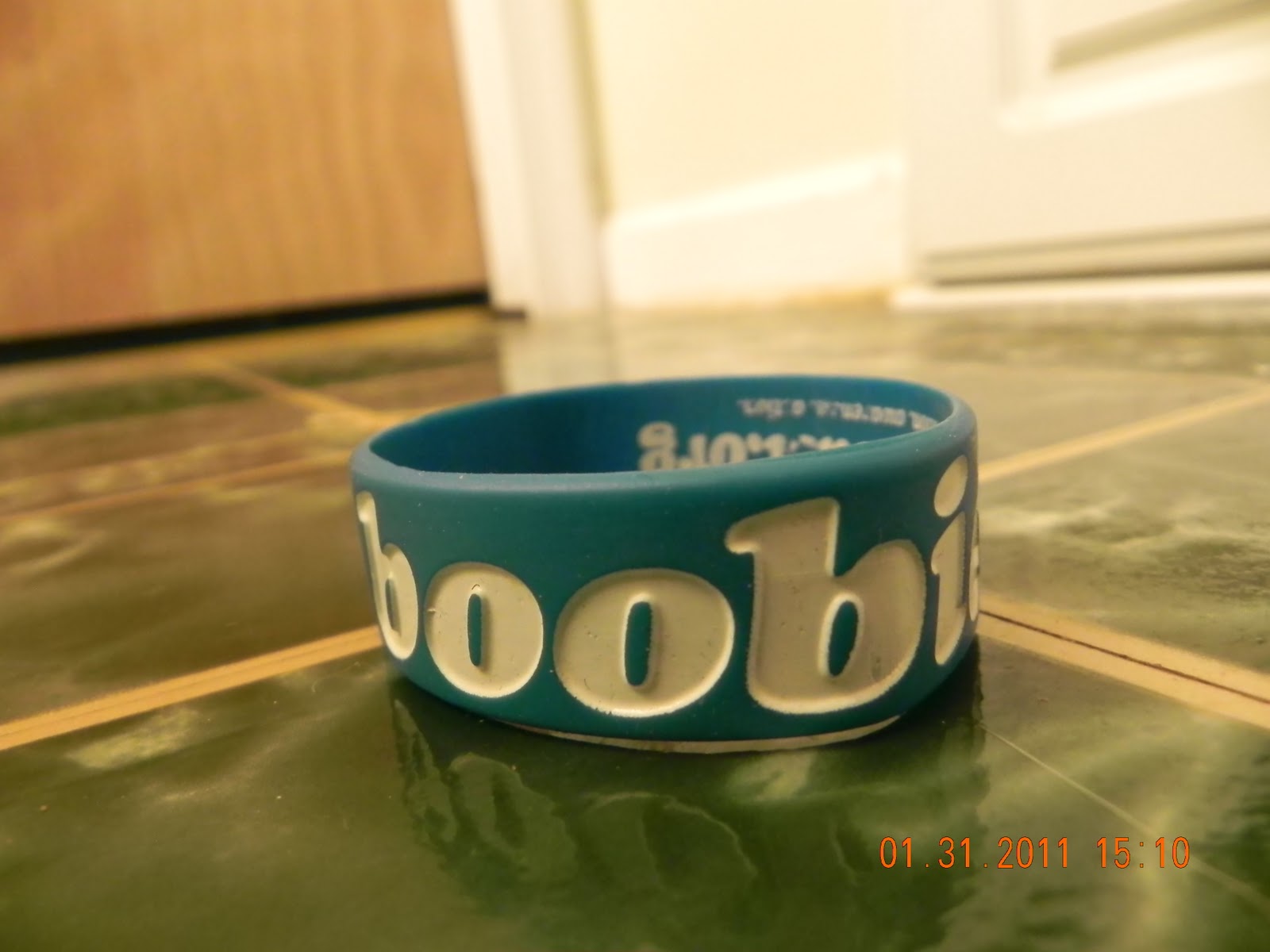 This is a picture of my I <3 boobies (keep a breast) bracelet. I'm thinking about going into photography so your going to be seeing a lot more.